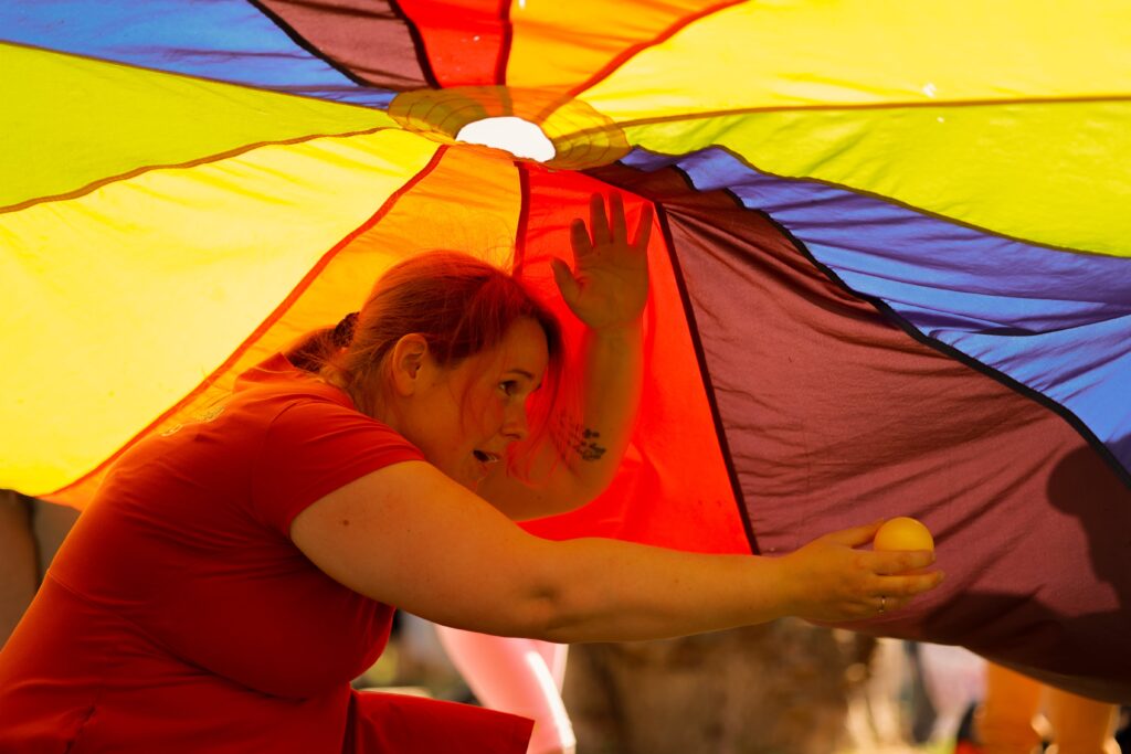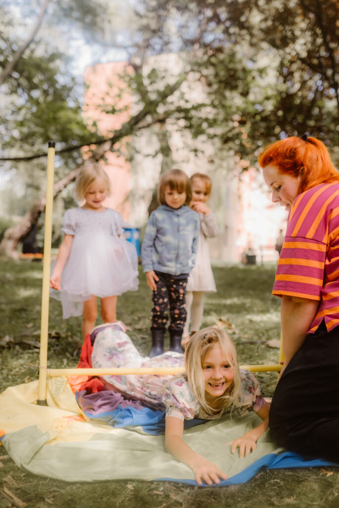 Mało które dziecko nie lubi baniek mydlanych! Puszczanie dużych baniek sprawią ogromną radość dzieciom. Używamy bezpiecznego płynu do baniek i odpowiedniego sprzętu, aby dzieci mogły przenieść się w magiczny świat baniek. Mogą zobaczyć nie tylko zwykłe bańki, ale także bańki dymne i ogniowe. Na koniec każde chętne dziecko może zostać zamknięte w bańce. Jeśli pogoda pozwala, robimy duże bańki na zewnątrz, dając dzieciom szansę na samodzielne tworzenie i rozbijanie baniek. Nie robimy baniek ogniowych na zewnątrz.